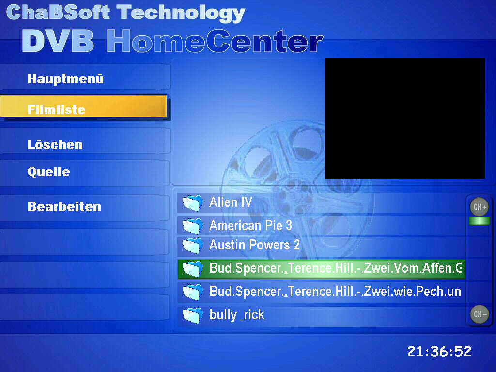 Mit dem DVB HomeCenter können Sie problemlos die gebräuchlichsten Videoformate abspielen und verwalten.(Die Videocodecs werden vorausgesetzt)