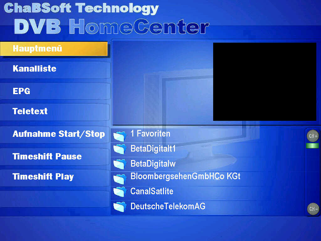 Das DVB Homecenter ist ein Mediacenter zum verwalten Ihrer Musik und Videosammlung. Ebenfalls ist das Schauen und Aufnehmen von TV-Sendungen mittels einer TV-Karte möglich. Zur Zeit unterstützt das DVB Homecenter nur die DVB Karte Twinhan Sat-CI . Weitere Karten Updates werden folgen. Folgende Features werden in der finalen Version enthalten sein: